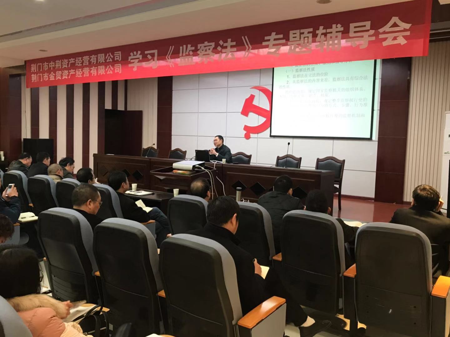 2018年12月5日上午,市中荊資產(chǎn)經(jīng)營(yíng)有限公司、市金貿(mào)資產(chǎn)經(jīng)營(yíng)有限公司在五樓會(huì)議室聯(lián)合舉辦了《中華人民共和國(guó)監(jiān)察法》專題輔導(dǎo)會(huì),中荊投資控股集團(tuán)有限公司領(lǐng)導(dǎo)及系統(tǒng)內(nèi)全體員工參加了輔導(dǎo)。會(huì)議由公司副總經(jīng)理梁世希同志主持,邀請(qǐng)了荊門黨校法學(xué)教授吳衛(wèi)東授課。